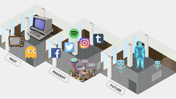 Starting with the 'Past' segment, one can interact with digital devices that simulate old handheld games which we used to own as a child. Other technologies from the past include the television, cassette and the Sentosa musical fountain light show. Moving onto the current age, social media would dominate this space and lastly, the 'Future' segment will include augmented reality, artificial intelligence as well as holograms. VR glasses will be provided to interact with these hologram displays to facilitate constructivist art creation. Through this exhibition, we hope to create a sense of nostalgia and to encourage innovation among the future generation.